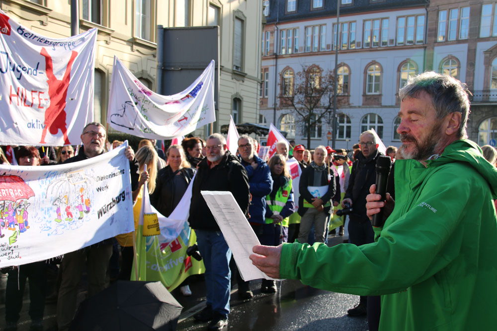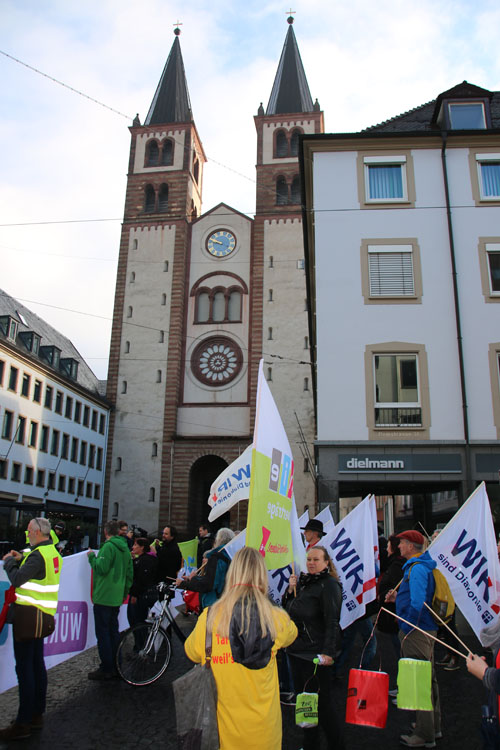 haben sich am frühen Sonntagmorgen bei strömenden Regen vor der St. Stephan-Kirche in Würzburg versammelt, um gegen die geplanten Verschlechterungen des MVG der Evangelischen Kirche Deutschland zu protestieren. Ein Drittel kam allein aus Württemberg! Dafür ein herzliches Dankeschön und kräftigen Applaus all diesen engagierten Kolleginnen und Kollegen!!