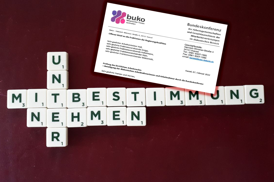 Seit vielen Jahren fordert die Buko, gemeinsam mit den diakonischen Beschäftigten und der Gewerkschaft ver.di, die Stärkung der Arbeitnehmerinnenrechte und der betrieblichen Mitbestimmung in kirchlichen und diakonischen Betrieben.