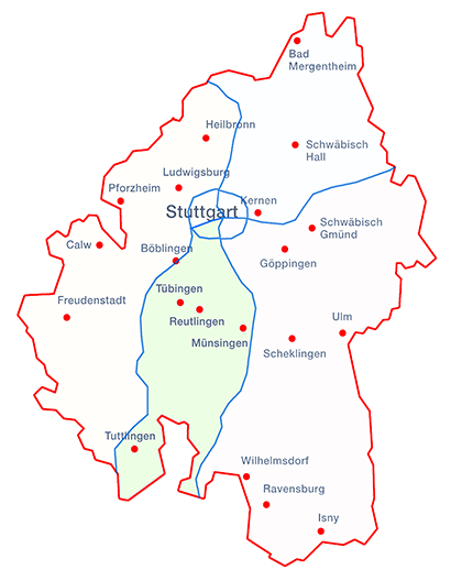 Die Region Süd der AGMAV Württemberg umfasst folgendes Gebiet:
